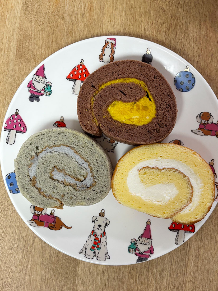 はちみつロールはしっとり、鉄板の美味しさ。黒ごまロールは香ばしくてとてもリッチな味で、