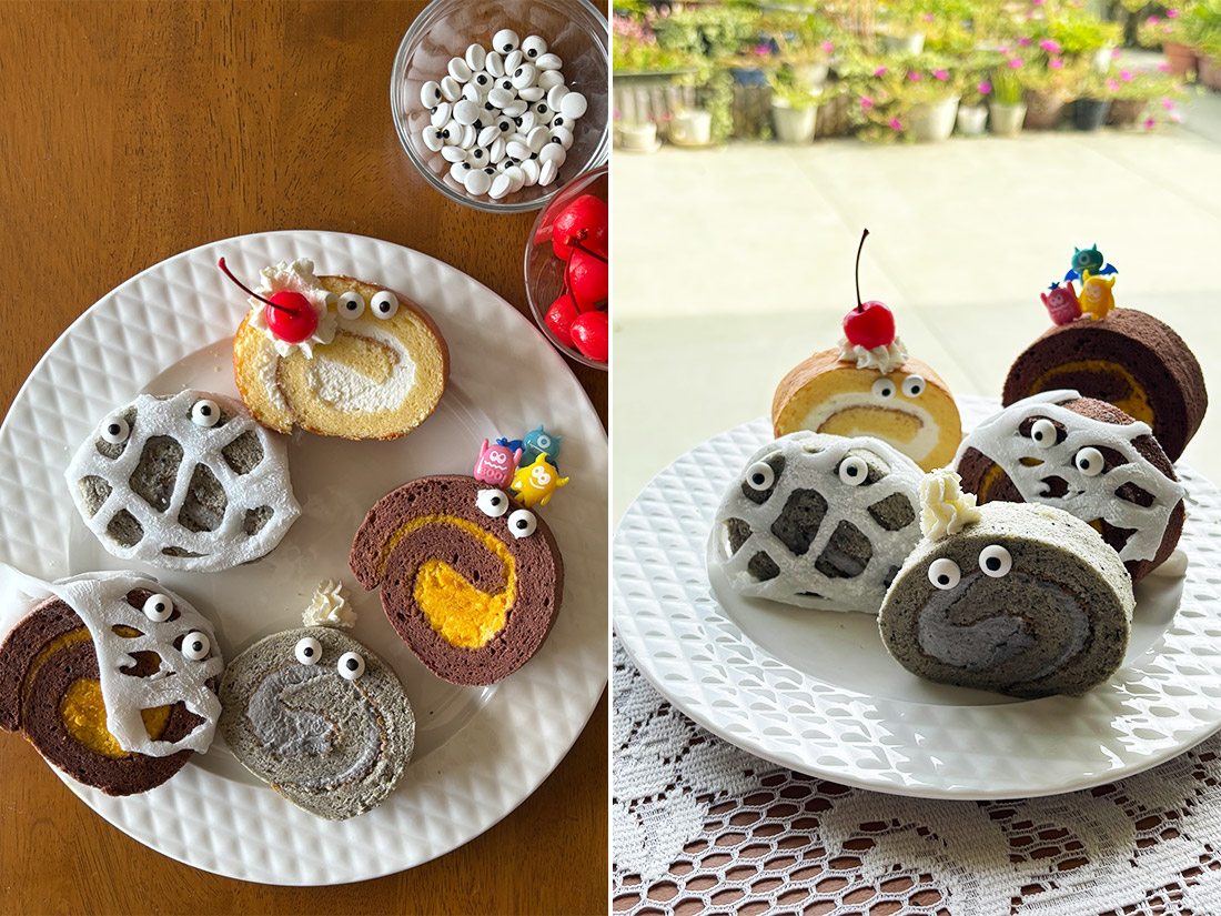 ロールケーキのモンスターたちが誕生しました♪アイボールが良い仕事をしてくれています。